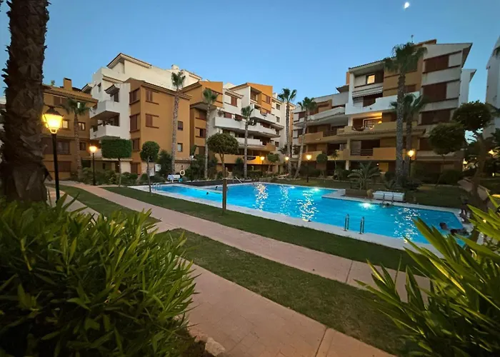 Sunny First Floor Apartment Recoleta Punta Prima Torrevieja med 2 sovrum, som ligger inom 2 km från Centro Comercial Zenia Boulevard, erbjuder en pool. Med tillgång till golfbana är den 89 m² stora lägenheten perfekt för aktiva gäster som söker rekreationsmöjligheter.